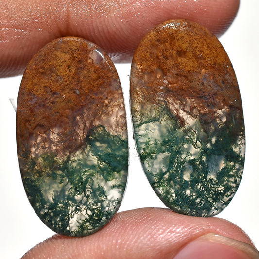 Luxurious Oval Moss Agate Pair – Hand-Polished Natural Stone Cabochons