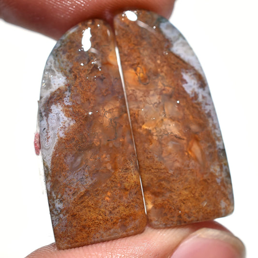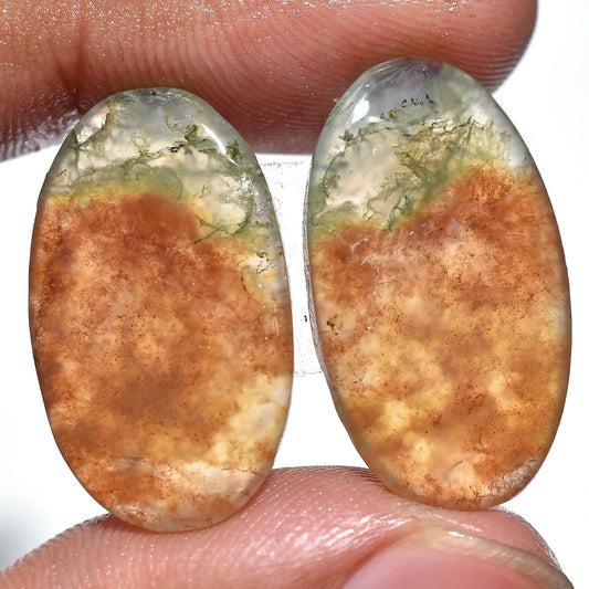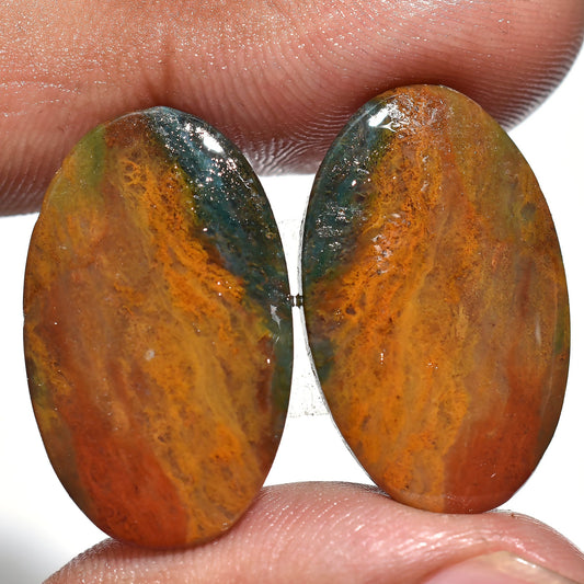 Orange Moss Agate Cabochon Pair – Matching Oval Agate for Earrings & Healing Crystal Gifts