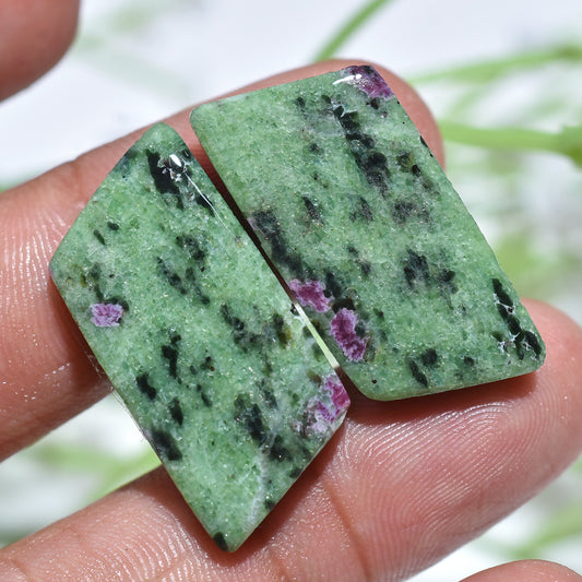 Smooth Ruby Zoisite Cabochons – Fancy Shaped Pair for Pendants, Earrings & Rings