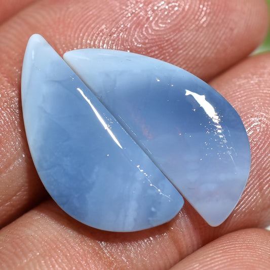 Beautiful Blue Opal Matching Pair - Pear-Shaped Cabochons for Earrings