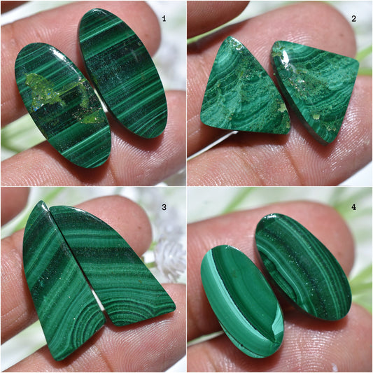 Oval Malachite Pair – Green Crystal Matching Stones for Handmade Earrings