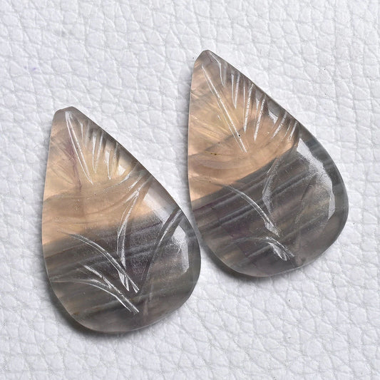 Rainbow Fluorite Gemstone Pair – Flower Carving Fluorite Stone, Carved Fluorite Gemstones, Wholesale Pair