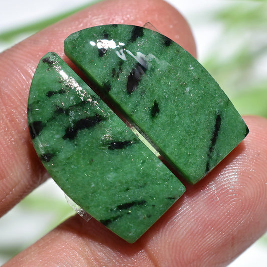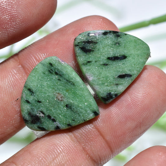 Green Ruby Zoisite Loose Cabochon Pair – Smooth Fancy Shape Stones for Jewelry Design