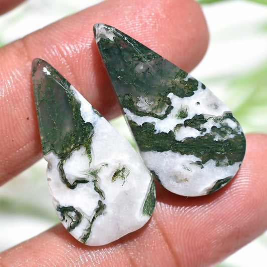 Elegant Moss Agate Pear Cabochon Pair – Natural Green Agate for Jewelry & DIY Crafting