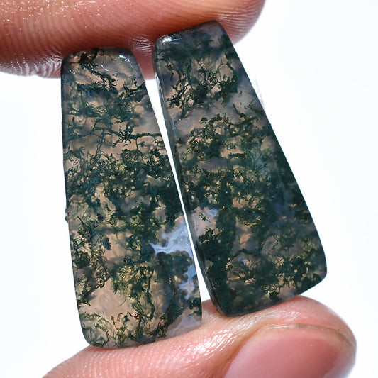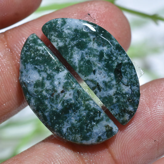 Elegant Natural Moss Agate Pair – Polished Fancy Cabochons for Custom Jewelry Crafting
