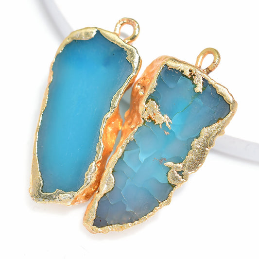 Agate Druzy Slice Charms Earring Pair – Brown-Blue Gold Electroplated Stones