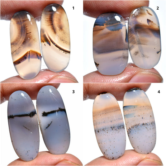 Montana Agate Pair Cabochon – 100% Natural Symmetrical Gemstones for Earrings