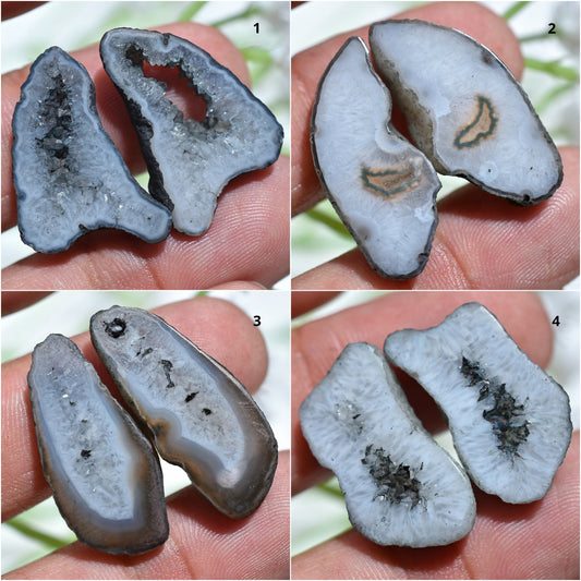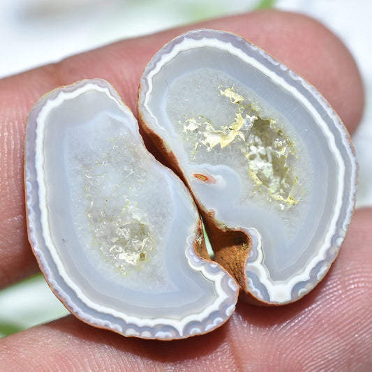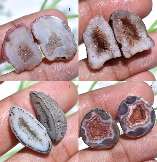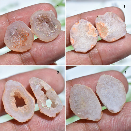 Fancy Agate Druzy Loose Pair - Light Orange Window Geode Gemstones, Earring Pair for Jewelry