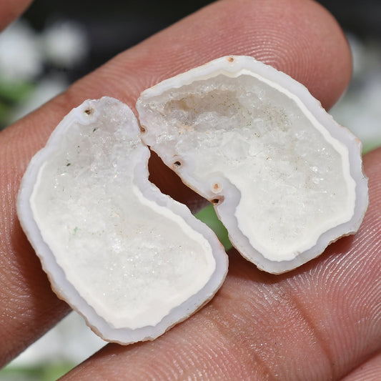 White Solar Quartz Druzy Pair - Natural Window Druzy for Creative Earring Making