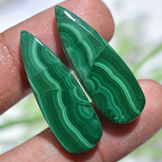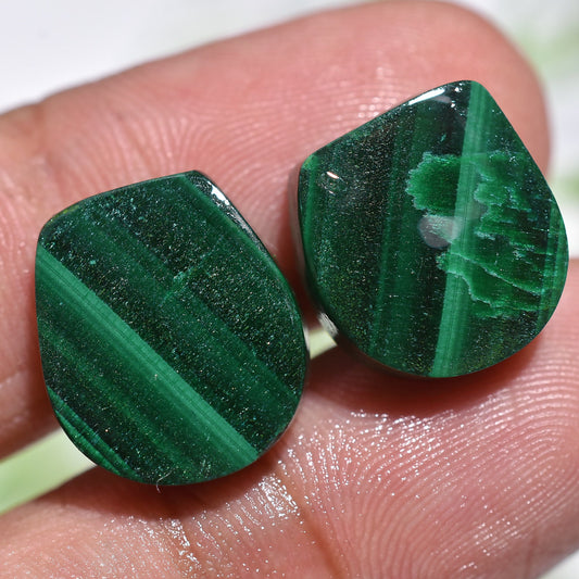 Natural Design Malachite Matched Pair - Pear Shape Green Malachite Cabochons