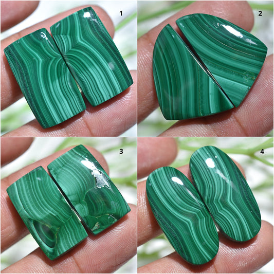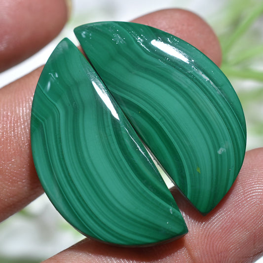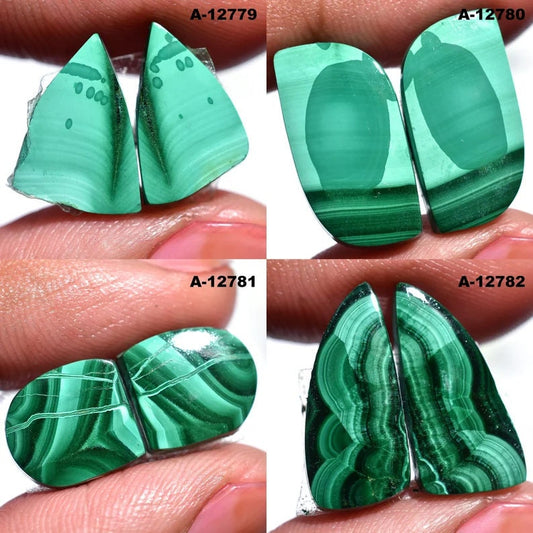 Fancy Malachite Gemstone Pair - Natural Green Matching Stones for Earrings