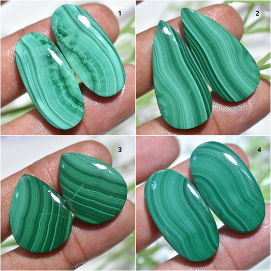 Best Quality Malachite Pear Gemstone Matching Pair - Oval Green Malachite Stones