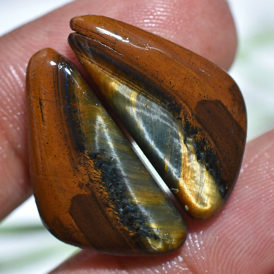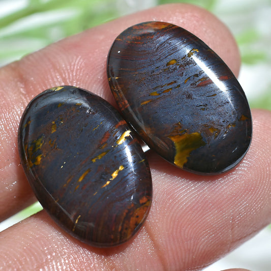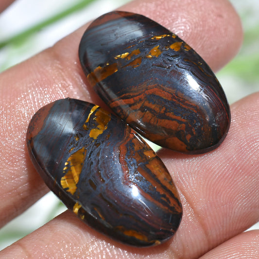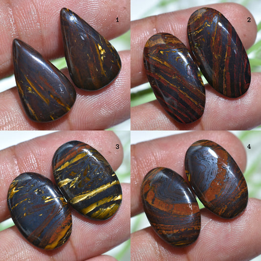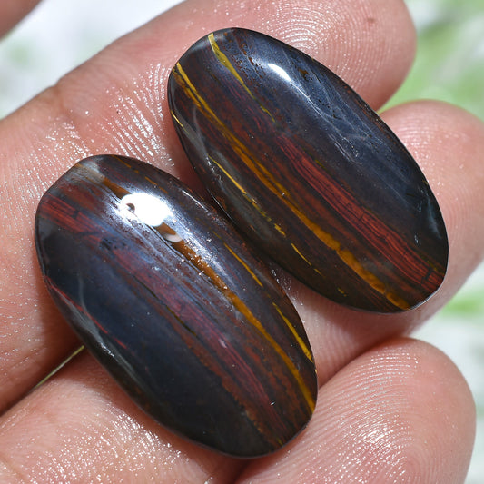Amazing Iron Tiger Eye Pair Cabochons - Smooth Polished Oval Gemstones
