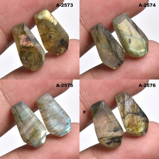 Natural Labradorite Coffin Shape Pair - Crystal Healing & Earring Gemstones
