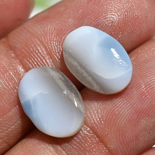 Natural Blue Opal Earrings Pair - Oval Shaped Smooth Matching Pair, Wholesale Price Stones