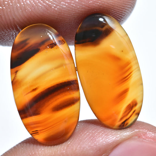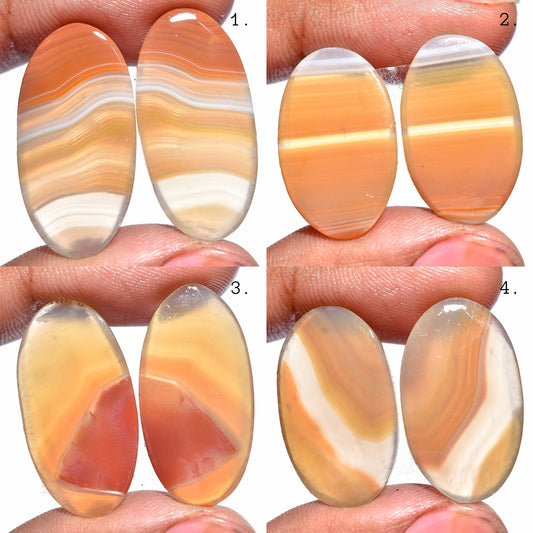Rare Orange Banded Agate Pair – Oval Cabochon Pair, Smooth Loose Gemstones for Jewelry Making