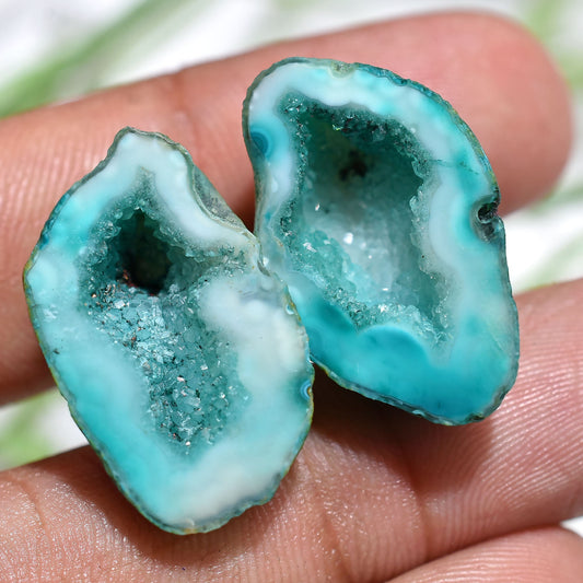 Geode Blue Druzy Agate Solar Quartz Pairs – Unique Window Agate Fancy Shape Slice for Jewelry Making