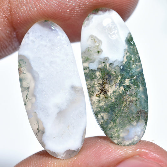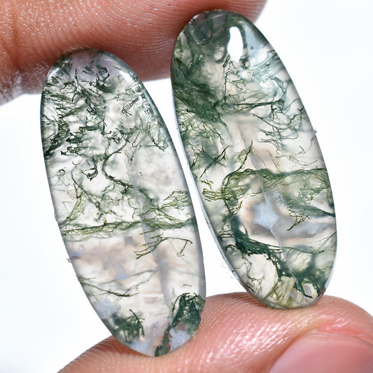 Oval Shape Moss Agate Pair - Designer Agate Gemstone for Earrings & Jewelry Making