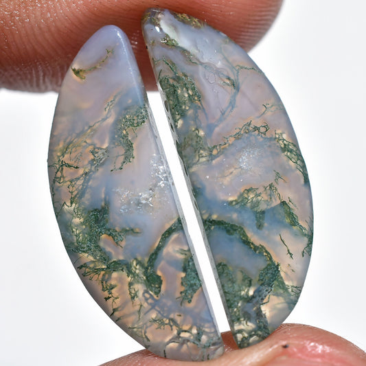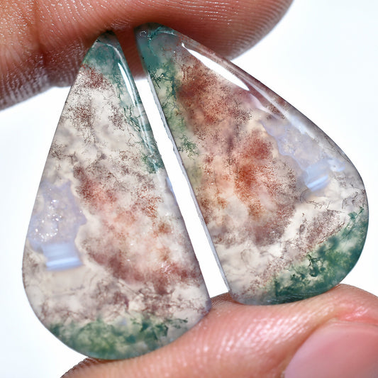 Pear Shaped Moss Agate Cabochons Pair - Loose Agate Healing Stones for Earring & Jewelry Making