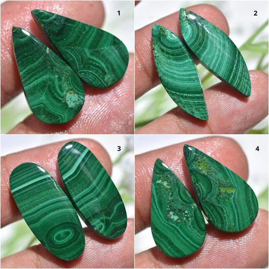 Natural Green Malachite Gemstone Pair – Smooth Flat Back Malachite Cabochon for Jewelry Making