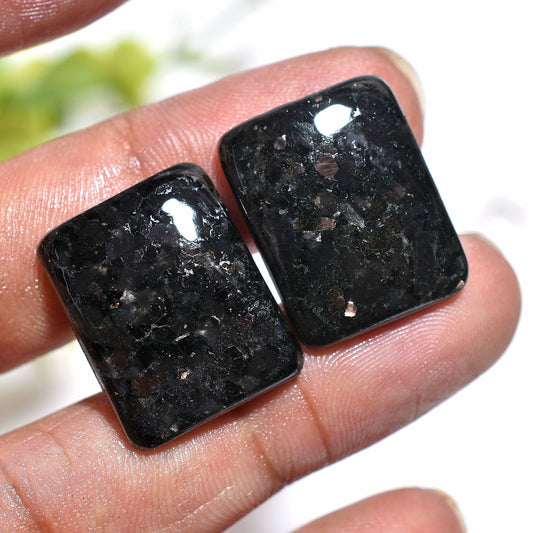 AAA Nuummite Gemstone Pair – Wholesale Rectangular Loose Cabochons for Custom Jewelry