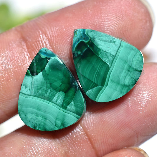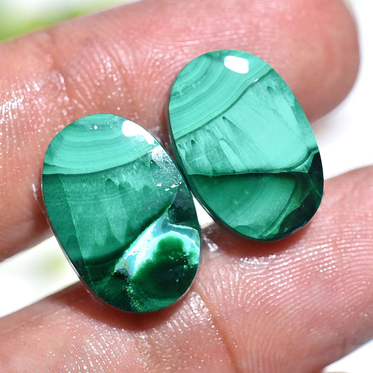 Natural Malachite Gemstone Pair – Wholesale Matching Cabochons for Jewelry