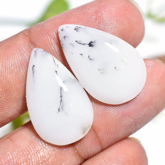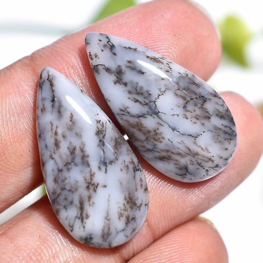 Elegant Dendrite Opal Pair – Handmade Polished TearDrop Cabochon Cabochons for Fine Jewelry