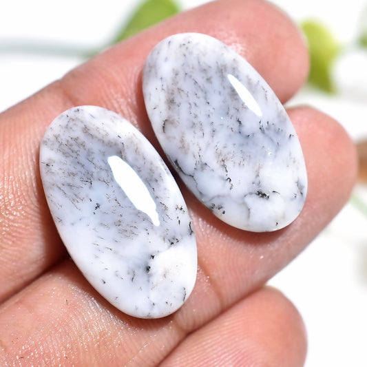White & Black Dendrite Opal Pair – Matching Oval Cabochons for Wholesale Supply