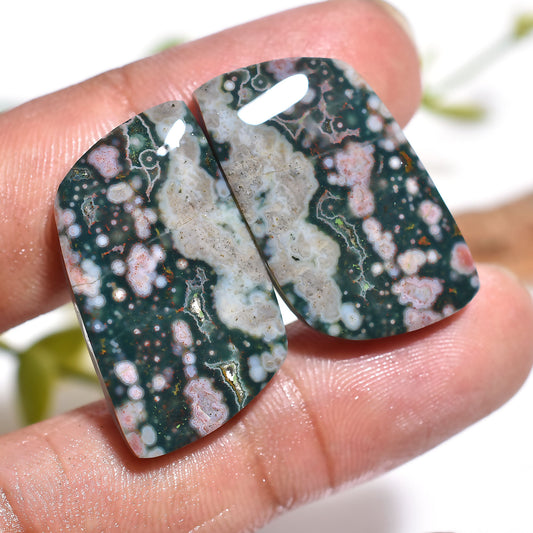 Natural Ocean Jasper Cabochon Pair - Wholesale Fancy Gemstone Pair
