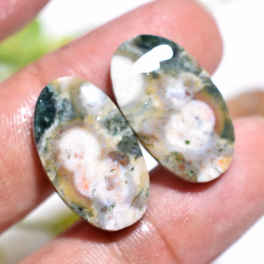 Wholesale Ocean Jasper Cabochon Pair - Natural Oval Gemstone Pair