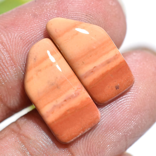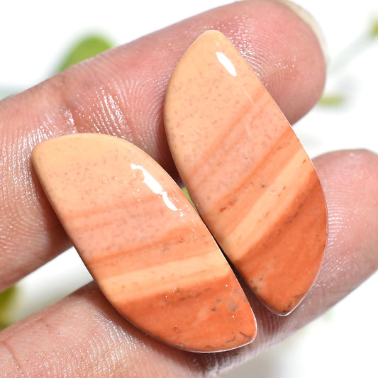 Striped Fancy Jasper Pair – Natural Banded Peach Jasper Matching Gemstone Pair for Jewelry Creators