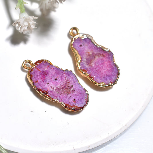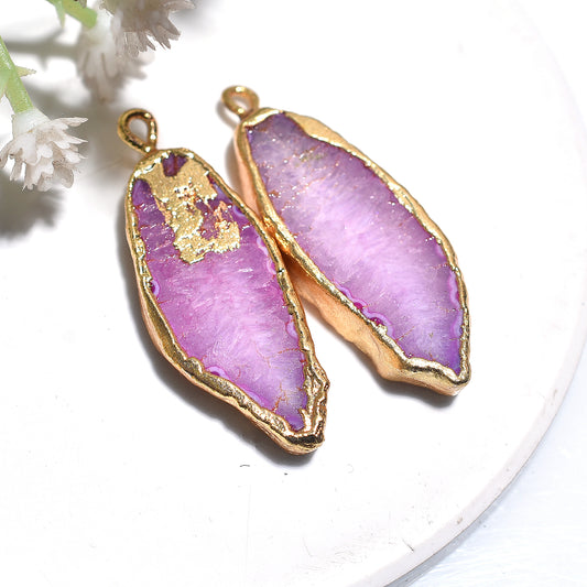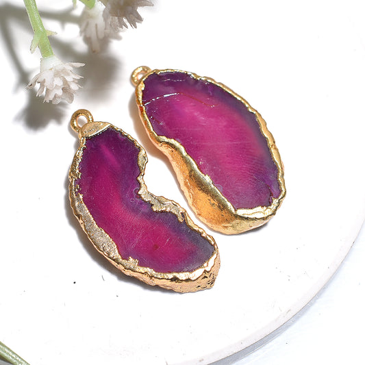 Golden Electroplated Pink Solar Quartz Agate Pair – Jewelry Gemstones
