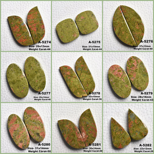 Green Unakite Gemstone Pair – Mix Shape Cabochon, Matched Earring Pair