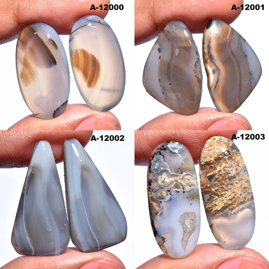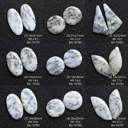 Dendrite Opal Matching Cabochon Pair - Mix Shape Loose Gemstones for Earrings