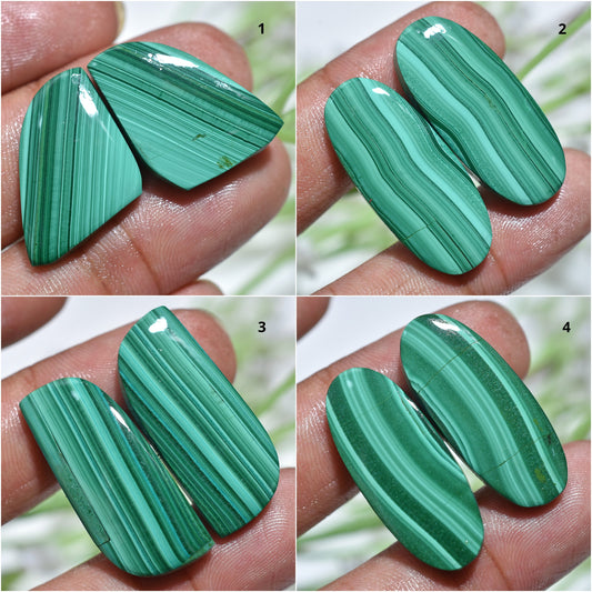 Fancy & Oval Malachite Pair - Green Healing Crystals for Earrings & Jewelry