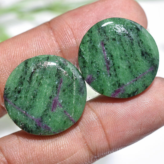 Ruby Zoisite Crystal Gemstone – Round Shape Earrings Pair at Wholesale Prices 22x22x3mm