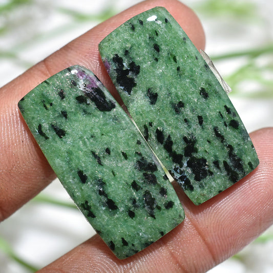 High-Quality Ruby Zoisite Pair – Smooth Rectangle Cabochons for Earrings & Jewelry Making