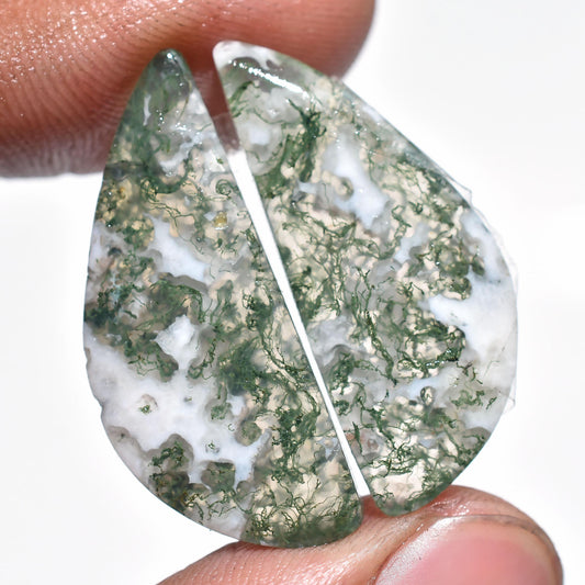 Attractive Moss Agate Pair Cabochon - Green Gemstone
