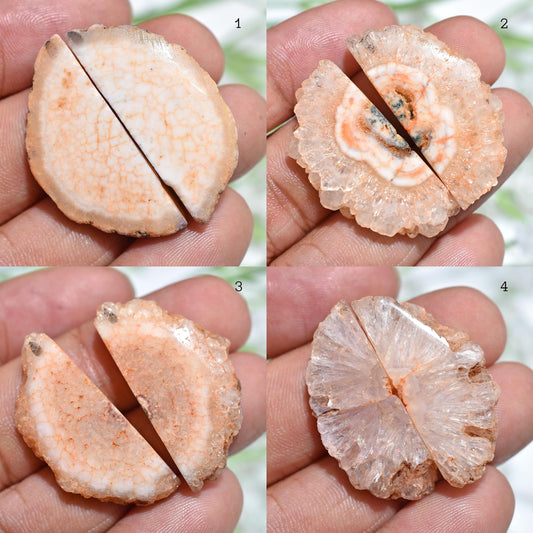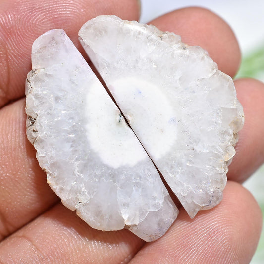 Matching Solar Quartz Pair – White Crystal Cabochon for Dangle Earrings & DIY Jewelry