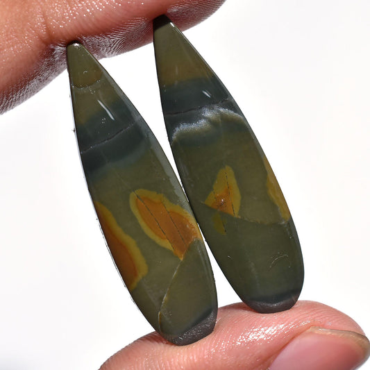 Unique Noreena Jasper Pair – Oval Matching Gemstone Set for Earrings 13x28x3mm