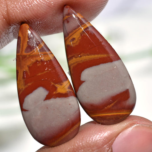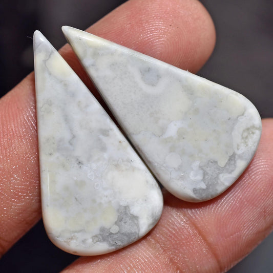 Earring Pair of Mookaite Jasper - Pear Shape Stone, White Jasper Pair, Gemstone Cabochon Pair, Designer Crystal Stone Earring Making For Her
