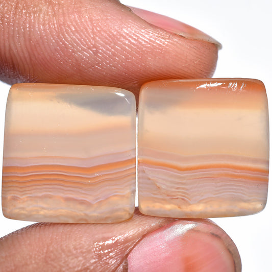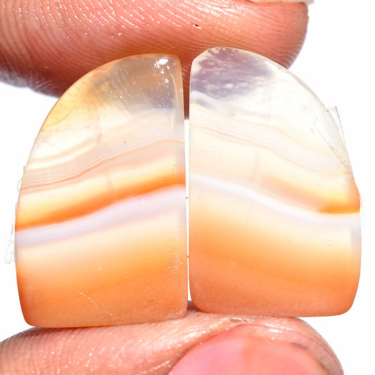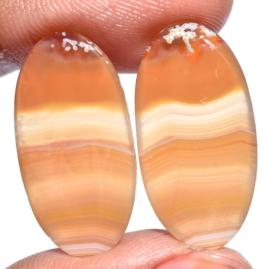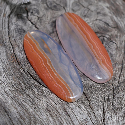 Orange Banded Agate Cabochon Pair - Loose Stones for Earrings