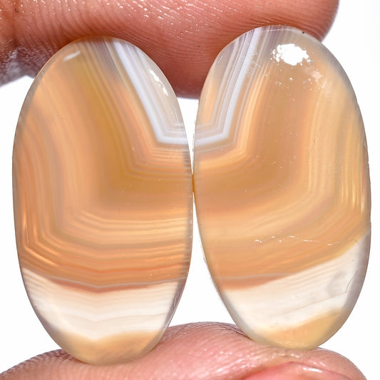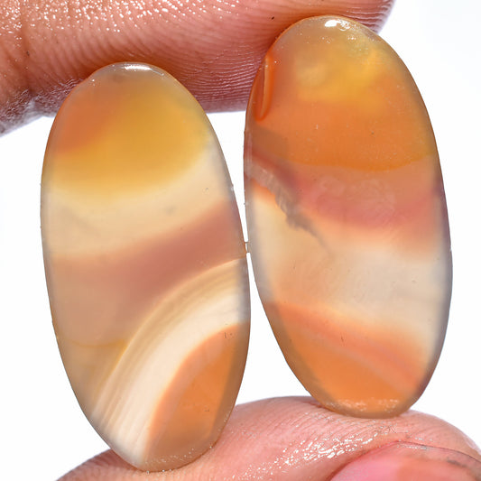100% Natural Orange Banded Agate Pair – Designer Oval Loose Stones