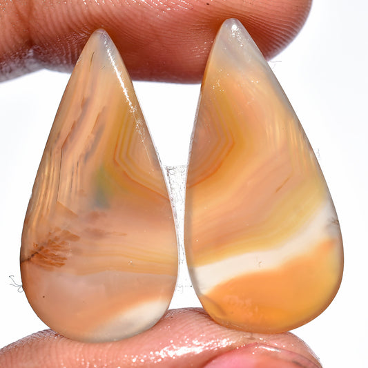 Orange Banded Agate Pair Gemstone - Pear Shape Earring Gemstones