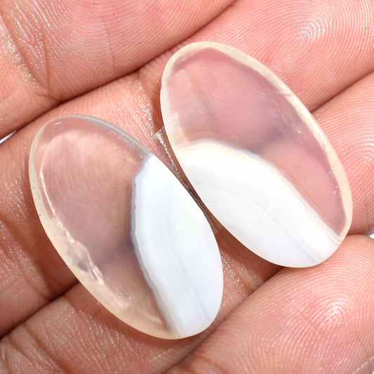 White Banded Agate Pair Gemstone - Oval Agate Earrings Pair