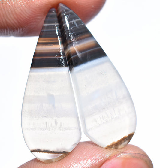 Amazing Banded Agate Gemstone Pair - Pear-Shaped Black Agate Cabochon Earring Stones