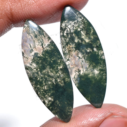 Marquise-Shaped Moss Agate Cabochon Pair - Smooth Polished Agate Gemstone for Earrings