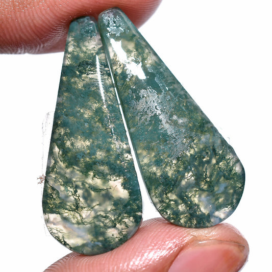 Attractive Green Moss Agate Pair Cabochons - Fancy Smooth Loose Gemstones for Earring Making