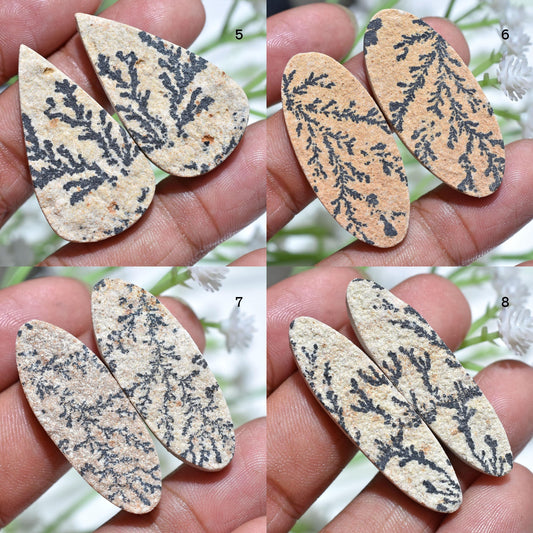 Designer Psilomelane Dendrite Cabochon Pair - Oval Shape Matching Earring Stone Set