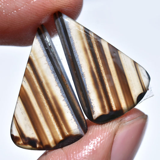 100% Natural Matched Pair Banded Agate Gemstone Earrings Pair - Fancy Shape Slice